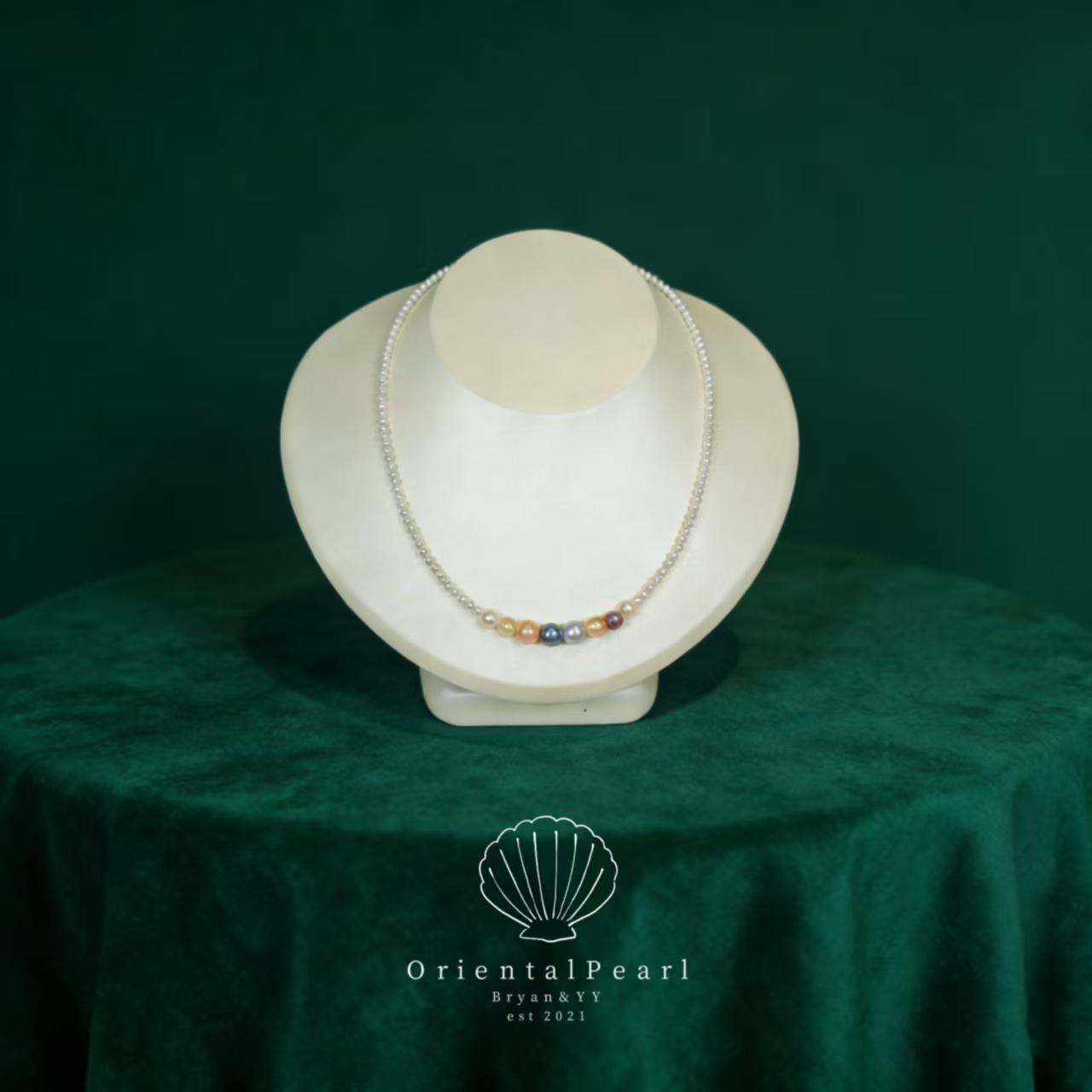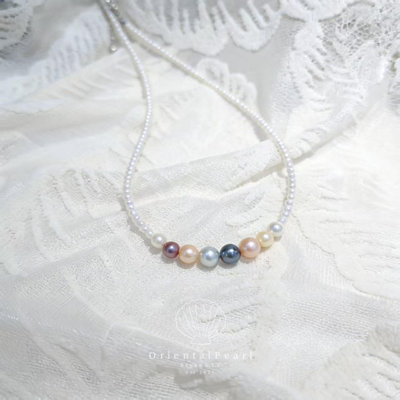 This necklace combines freshwater baby pearls and seawater pearls. It offers a unique blend of textures and colors, making it a distinctive piece. 🌊