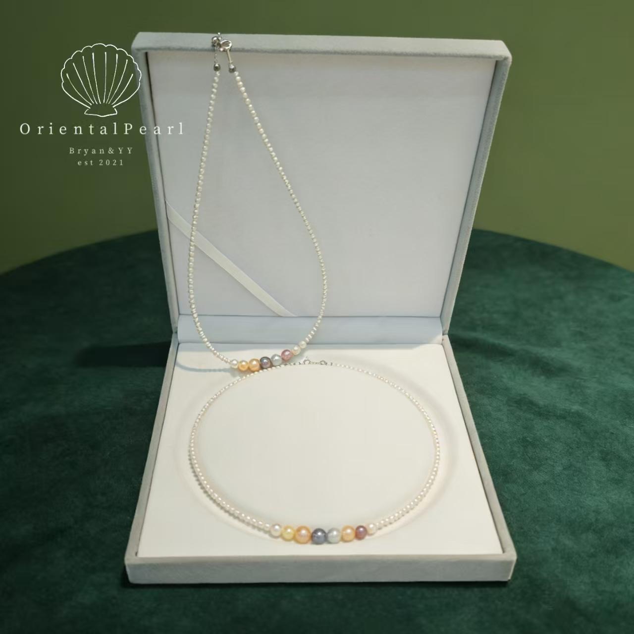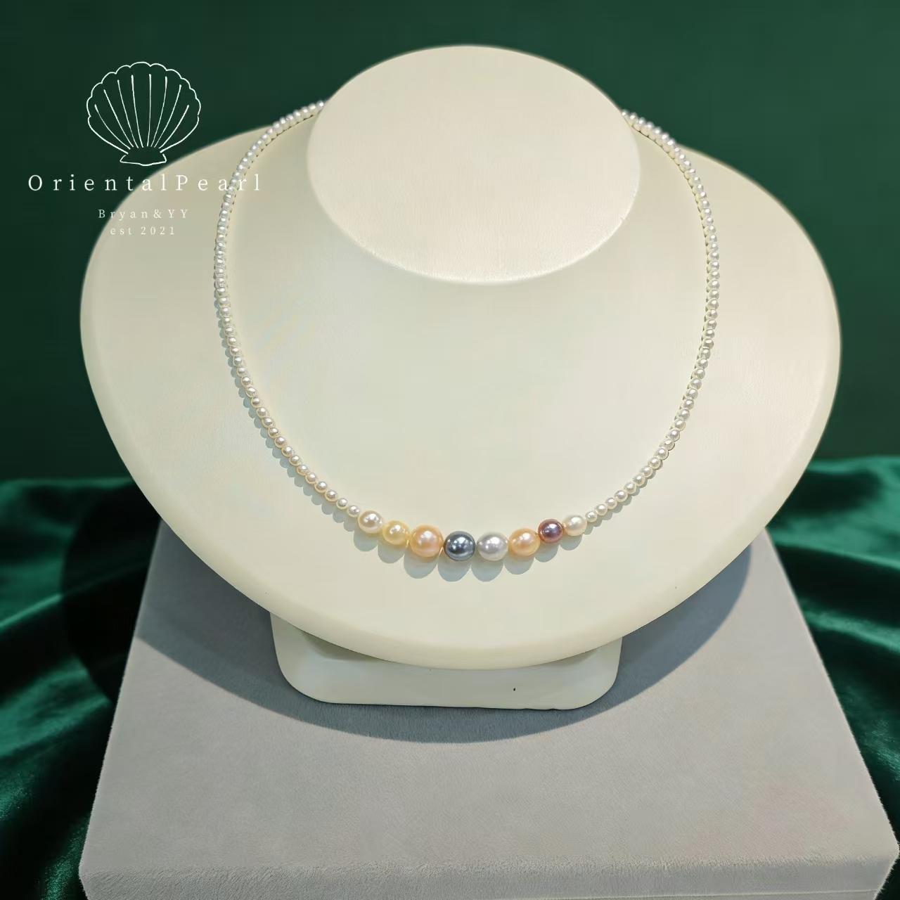 NC13-Multi color Candy Pearl Necklace Dreamy Rainbow Graduated Size Pearls Designer Piece Gradient Design Pearl Necklace with S925 Clasp Special Gift